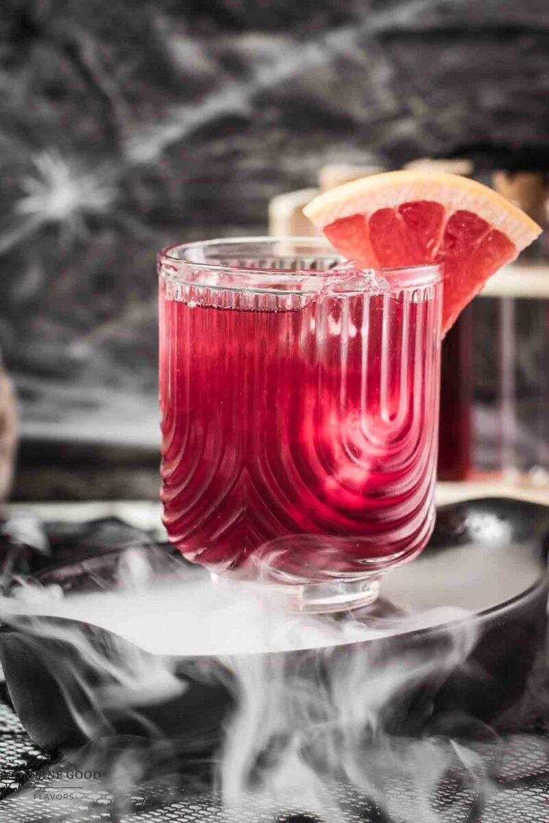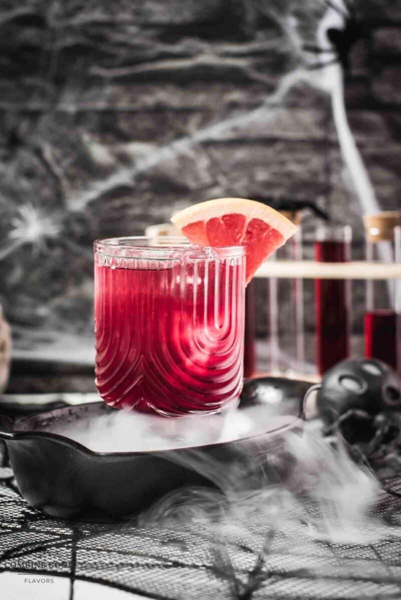 - Dark or tinted glasses make the cocktail look extra spooky.