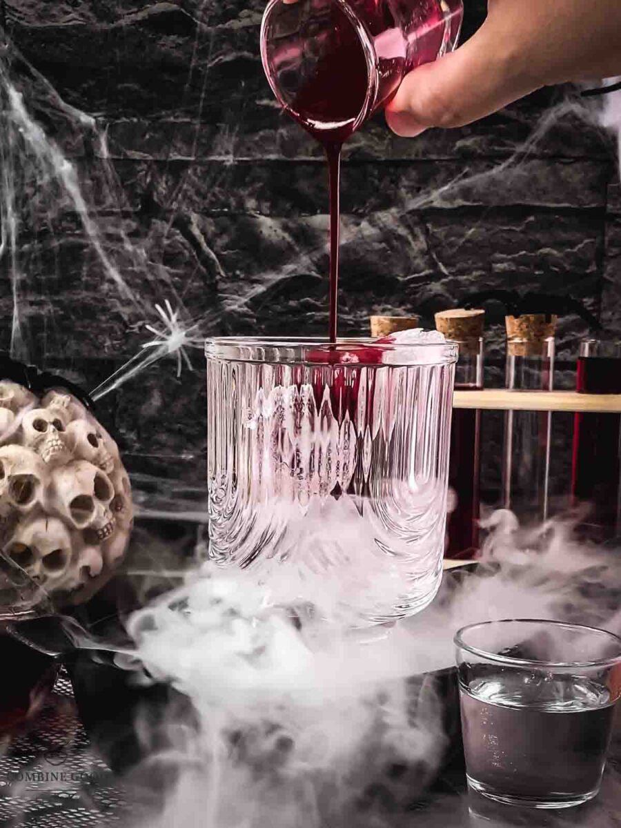 - The star of the show! Deep red and perfectly eerie, this syrup is what gives the cocktail its "bloody" look. You can make it at home with my Berry Blood Syrup recipe.